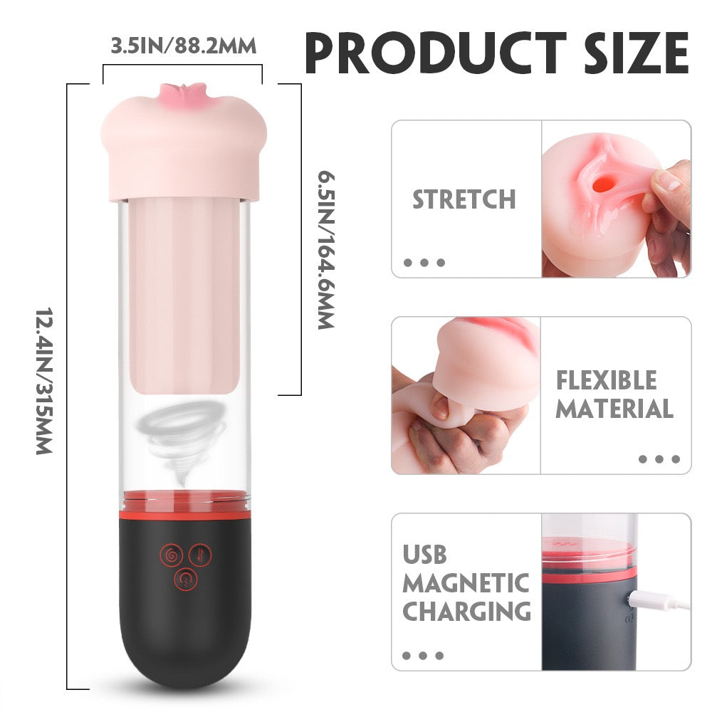 The transparent design with measurement indicators allows you to visually track your wellness progress, while the 6-chamber textured sleeve provides comprehensive sensory stimulation with varying textures that wrap and massage for an incredible tactile experience.